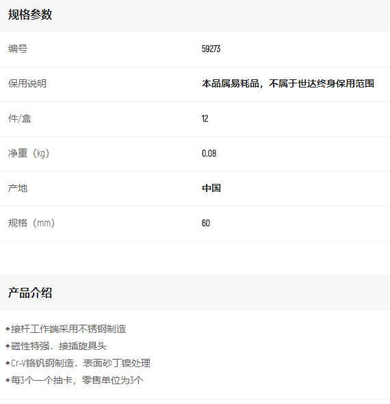 首頁>產品中心>螺絲批>旋具頭組套>世達3件6.3mm系列磁性接桿60mm