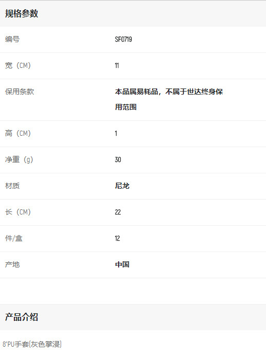 產品名字:世達8"PU手套(灰色掌浸)
