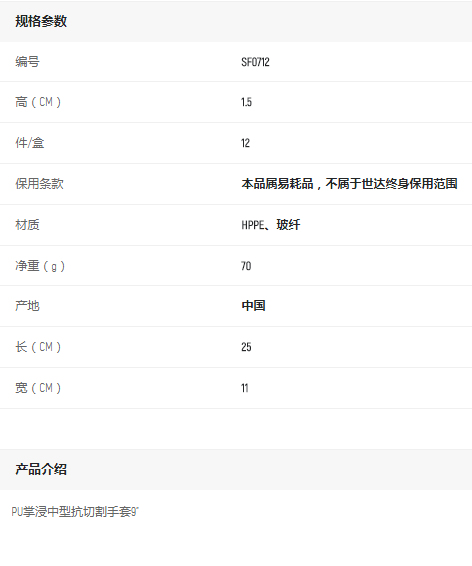 首頁>產品中心>手部防護>手套>世達PU掌浸中型抗切割手套9”