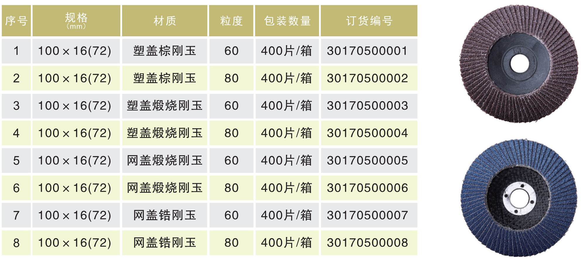 產(chǎn)品名字:東成百葉片塑蓋棕鋼玉#60# 100x16x72