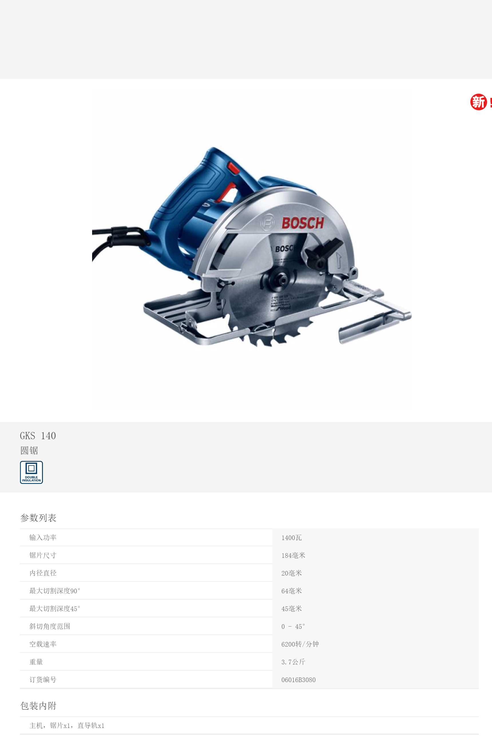 首頁>產品中心>電動工具>電圓鋸>博世圓鋸GKS140