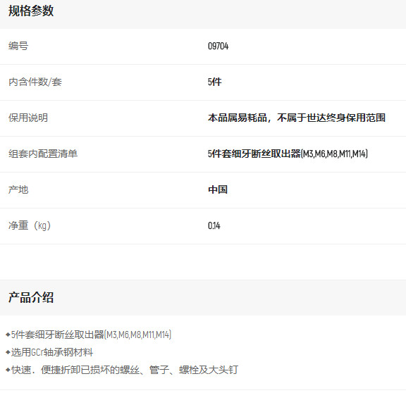 首頁>產品中心>其他手動工具>斷絲取出器>世達5件套細牙斷絲取出器
